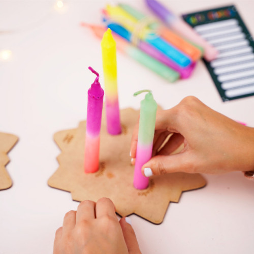 - 2 bases en madera grabadas con espacios para poner la vela y logo de la empresa