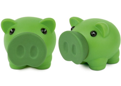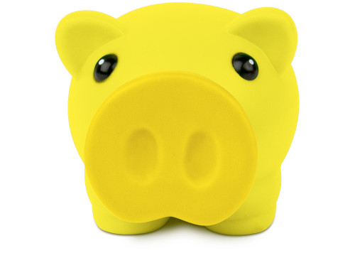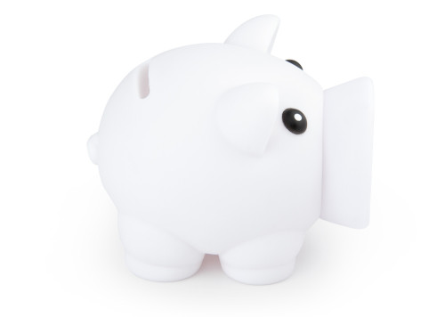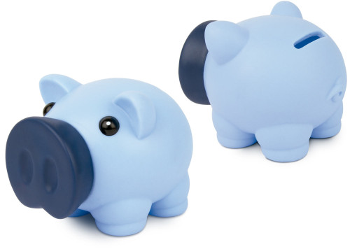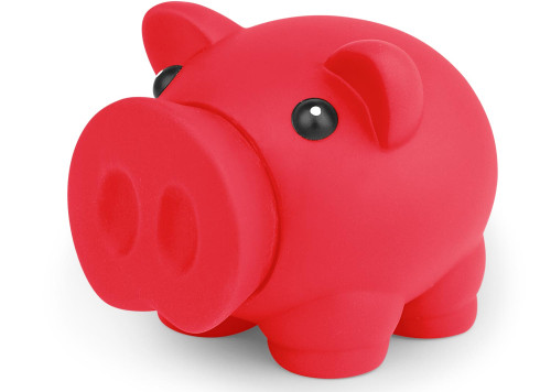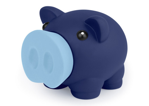 Alcancía con forma de cerdito. La nariz funciona como tapón para vaciar la alcancía.