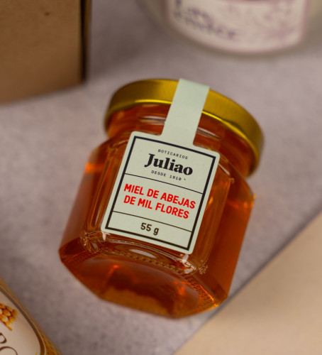 Miel de Abejas Premium (55g): Un frasco de miel de mil flores, 100% natural, perfecta para endulzar momentos especiales.