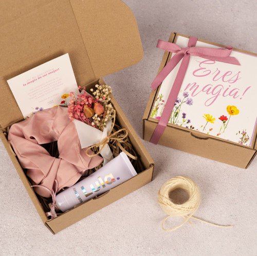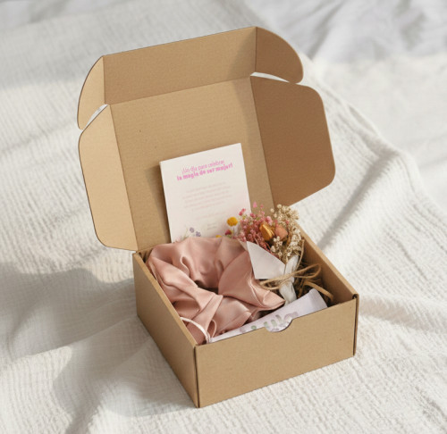 Caja de Regalo de Autor: Empaque de cartón kraft con diseño floral personalizado con logo de la empresa