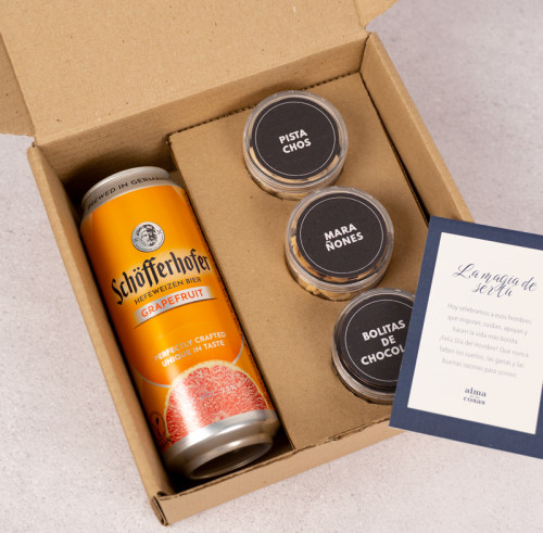 Cerveza Alemana Premium: Una refrescante Schöfferhofer Grapefruit (Hefeweizen Beer), conocida por su sabor único y artesanal.