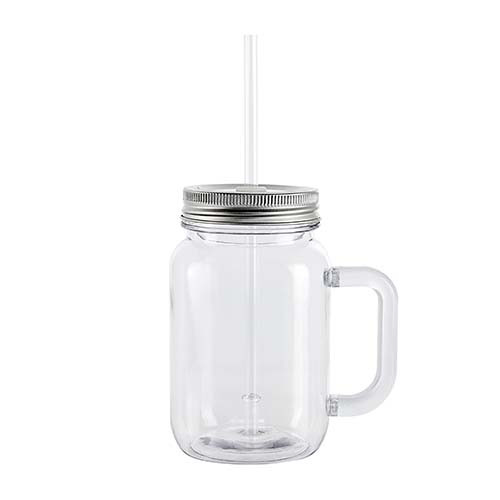 Vaso con sujetador lateral, tapa de rosca y pitillo.